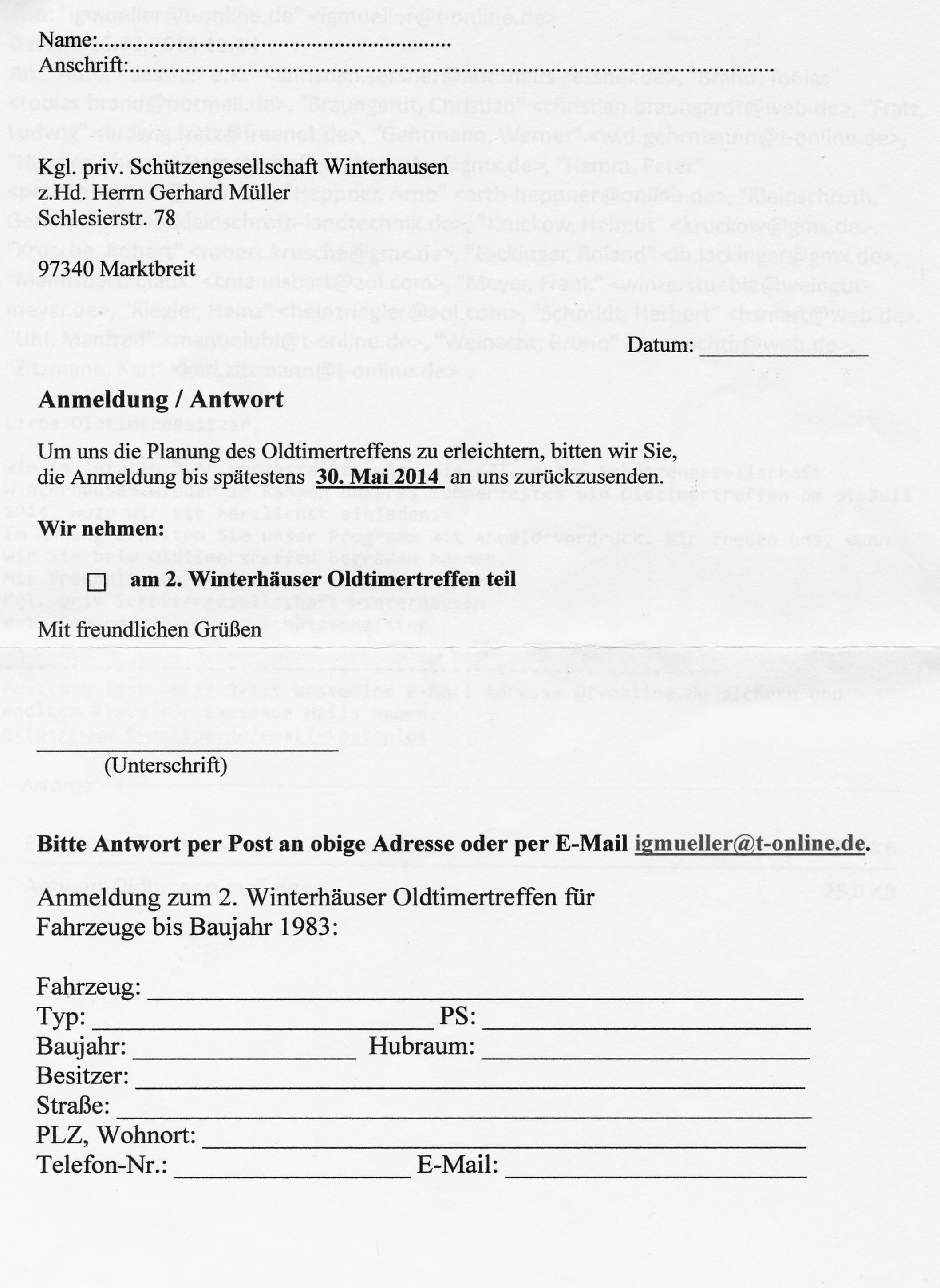 Info und Anmeldung bei Alois Nitsche Tel. 09364-6900 oder 017681654611 oder Email: