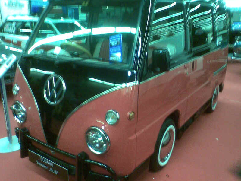 Der kleine SUBARU 6 Sitzer an der Front zum VW Bus umgestaltet. Ach isser süß!?