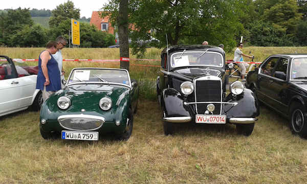 Sinsheim ist voll mit DB, BMW, Porsche, Rolls usw. Charlie`s 1800 Triumph kennen wir.