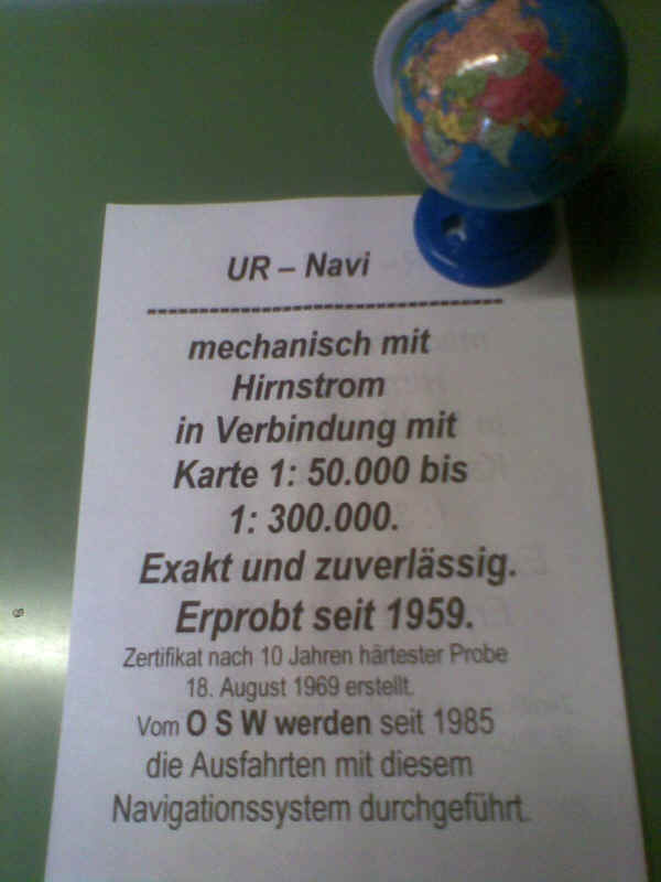 Motorhaube vom Volvo unser ?Ur-Navigationsgerät? mit der Beschreibung