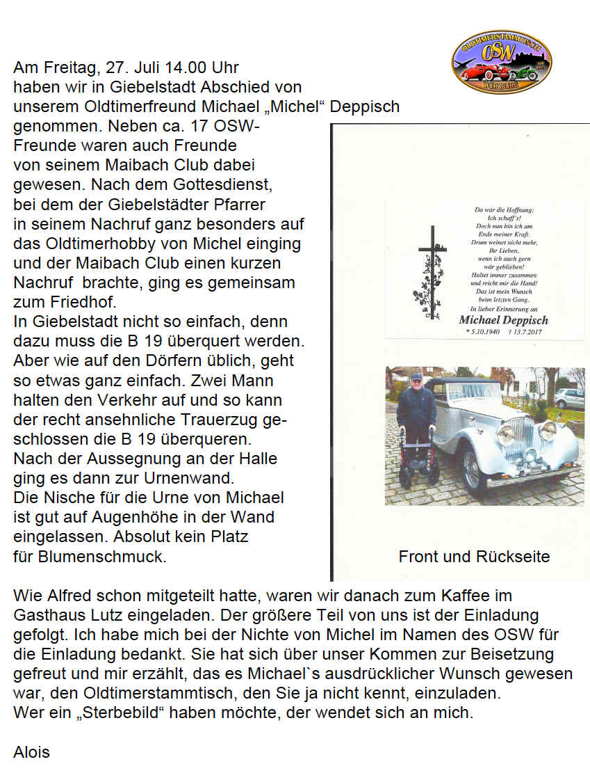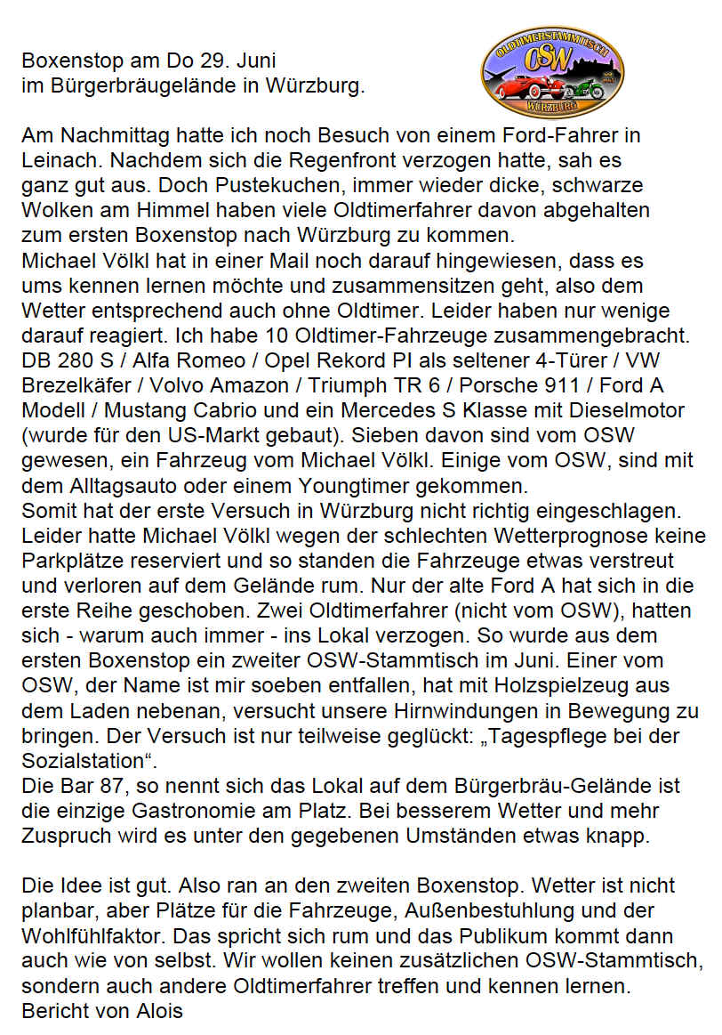 ihrem Baustellen-Wegweiser unter Punkt 09 auch geschrieben: „Oldtimerstammtisch