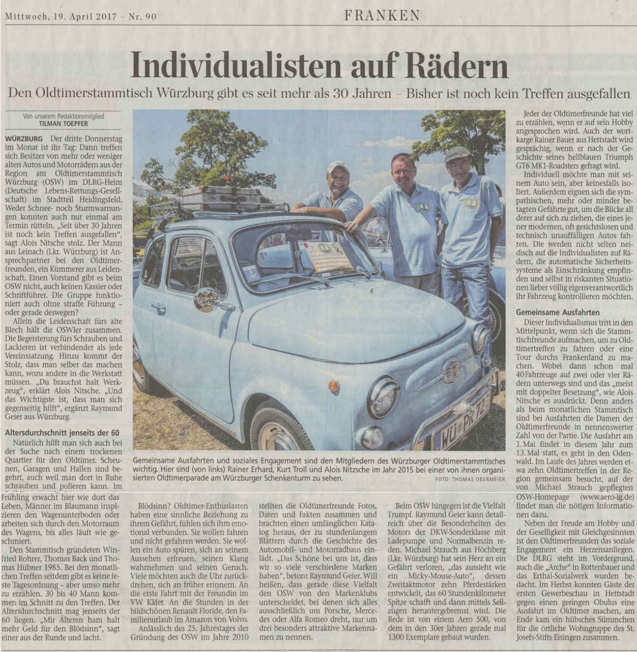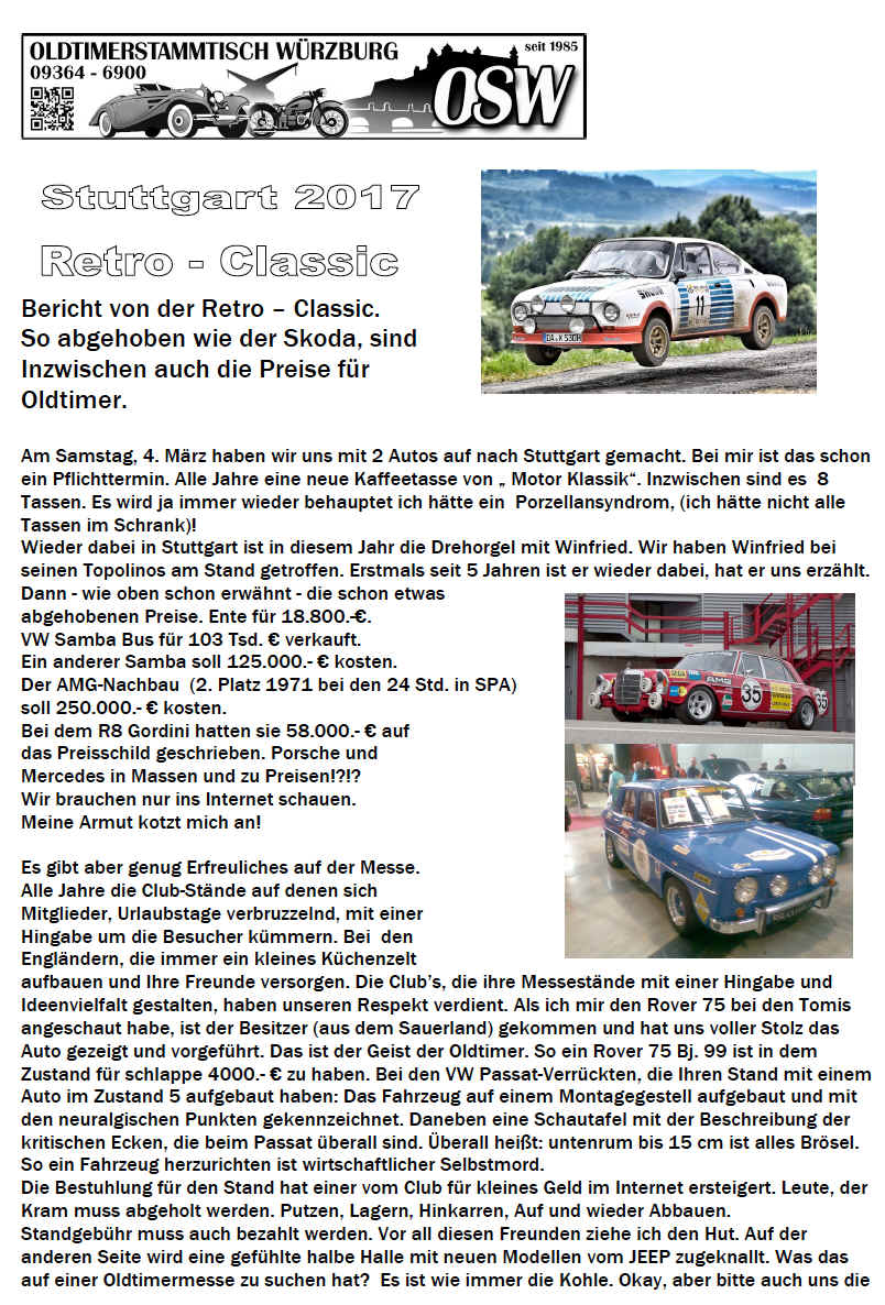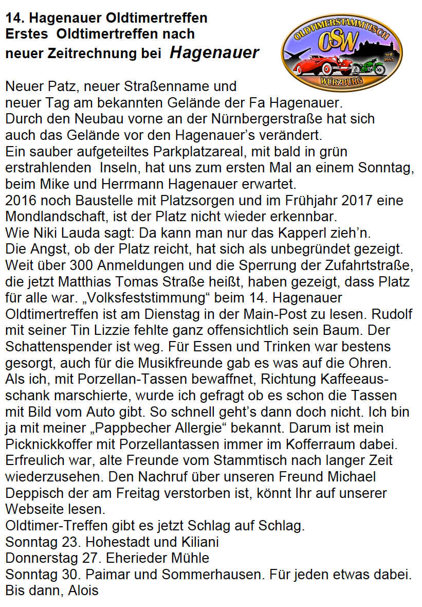 wir vom Oldtimerstammtisch Würzburg freudig auf 2018.