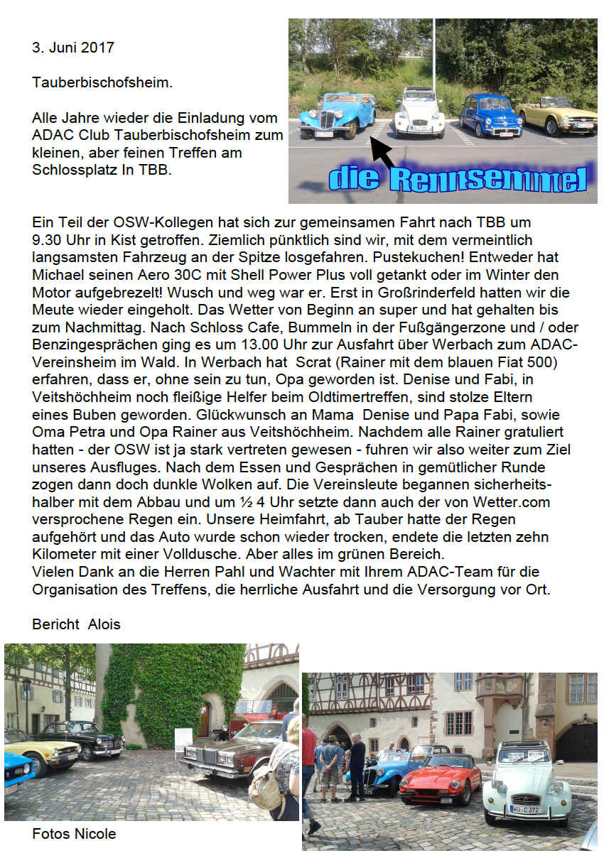 OSW-Ausfahrt zum Oldtimertreffen in Bad Orb anläßlich des