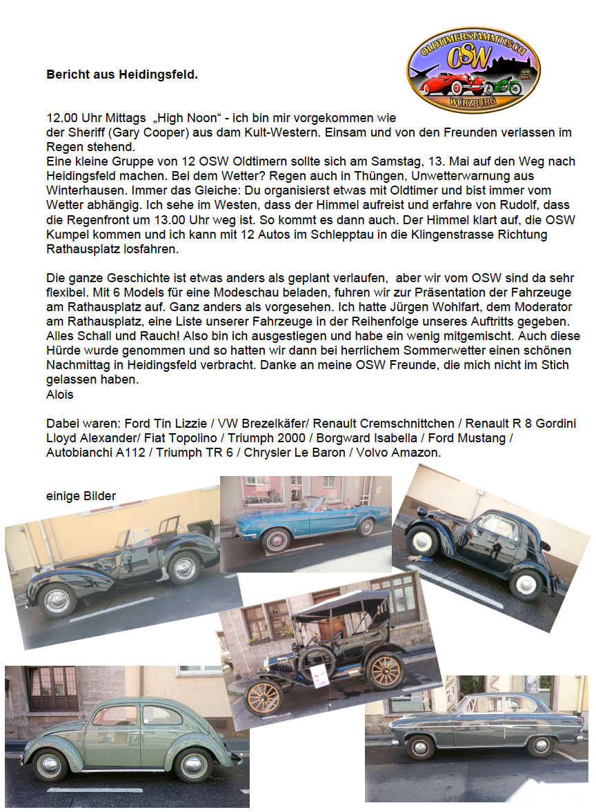 einfach zu dem jeweiligen Oldtimertreffen kommen. Termine in unserer