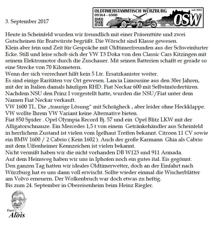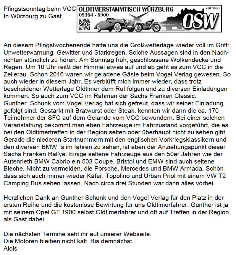 2018 der Freunde des OLDTIMERSTAMMTISCHES WÜRZBURG am 05.