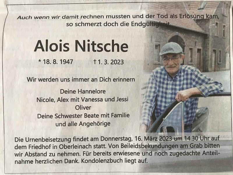 trauern um Alois Nitsche