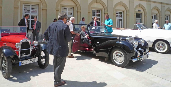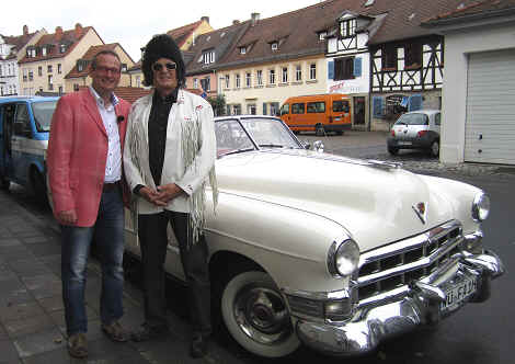 Straub mit Perücke und Cadillac in Kitzingen nach einem Auftritt