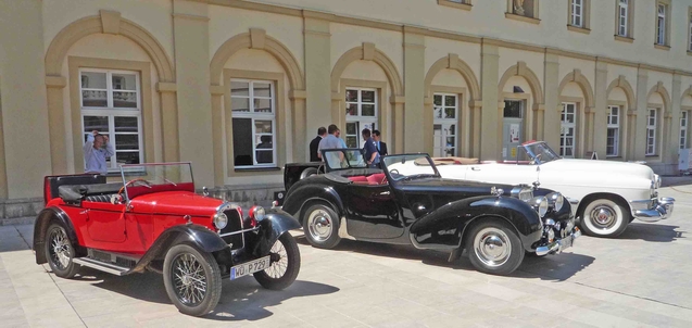 Stadt Würzburg drei Oldtimer-Stammtischler mit ihren Fahrzeugen