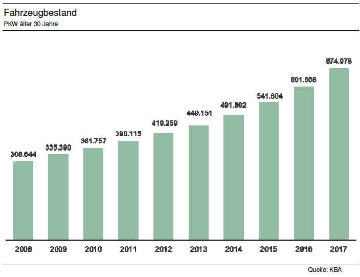 Die Anzahl aller PKW älter als 30 Jahre wuchs im