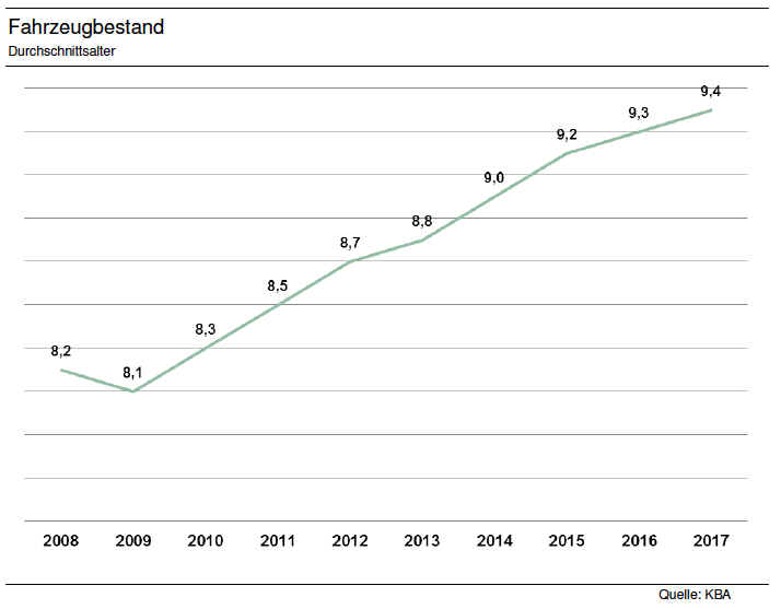 Fahrzeugalter steigerte sich somit auf 9,4 Jahre. Wie in jedem Jahr wird der