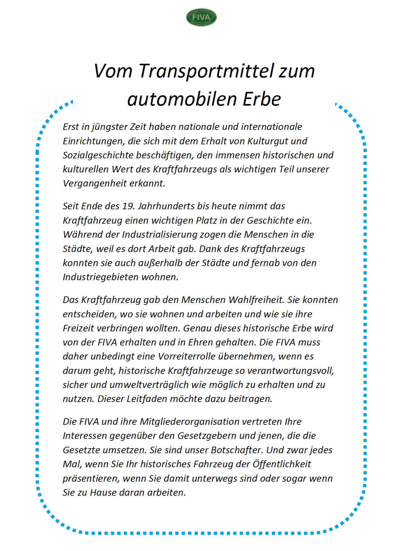 112. Ein Leitfaden der FIVA zum