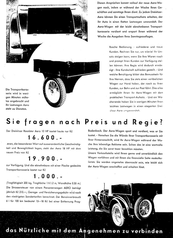Aero 30-Werbung im Autoclub-Magazin 1940 in der Slowakei