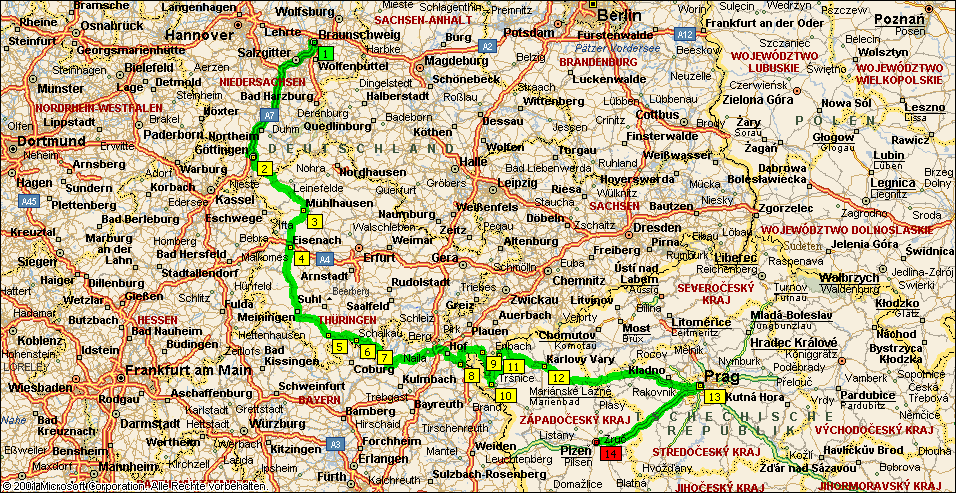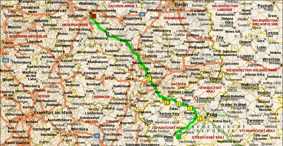 von Braunschweig nach Pilsen (ca. 770 km)