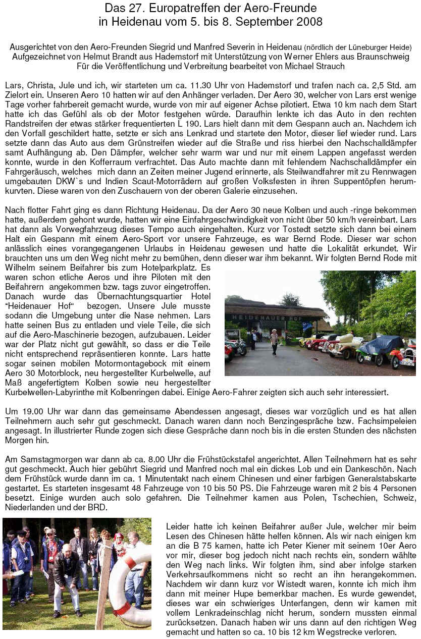 27. Europatreffen 2008 - Bericht von Helmut Brandt